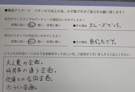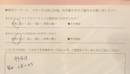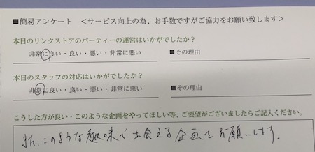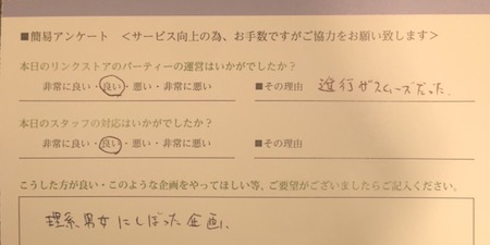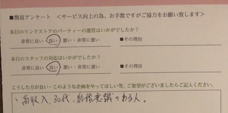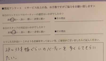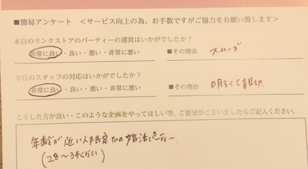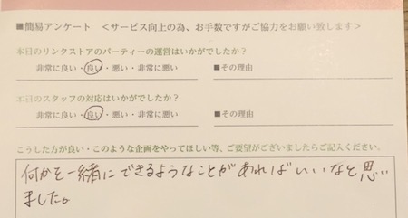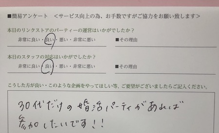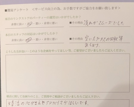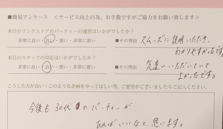 この度はリンクストア徳島の婚活パーティーにご参加いただきまして誠にありがとうございます