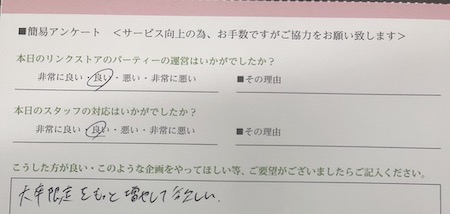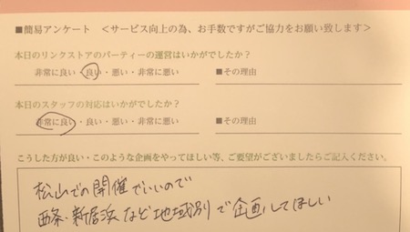 この度はリンクストア愛媛のパーティーにご参加いただき誠にありがとうございます