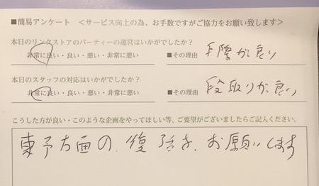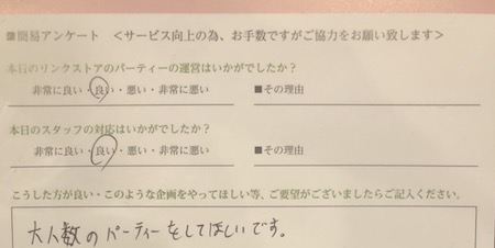 パーティー楽しんでいただけましたか?