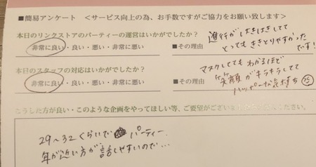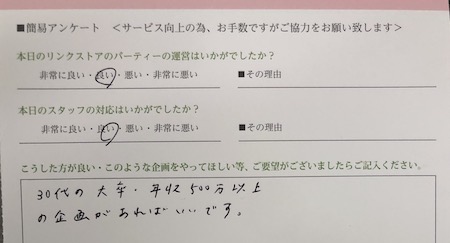 お見合い・婚活パーティーのお客様の声(口コミ)