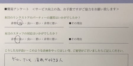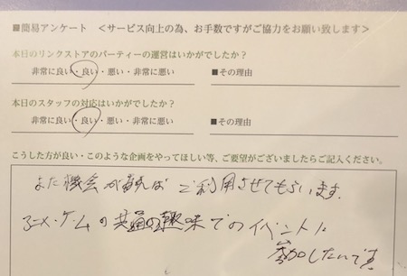 アニメゲームの共通の趣味でのイベントとのことでご提案いただきました