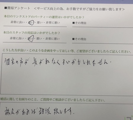 この度はリンクストア愛媛の婚活パーティーにご参加いただきまして誠にありがとうございます