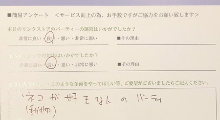 ?猫好き(動物好き)の方のパーティーとのことでご提案いただきました