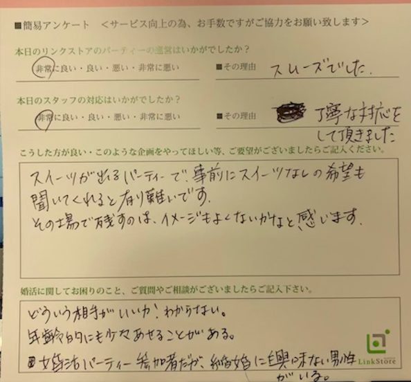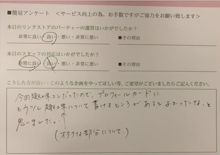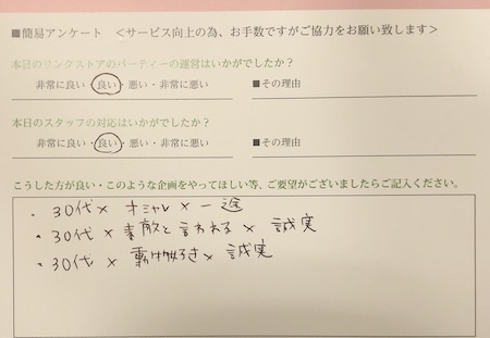 お見合い・婚活パーティーのお客様の声(口コミ)