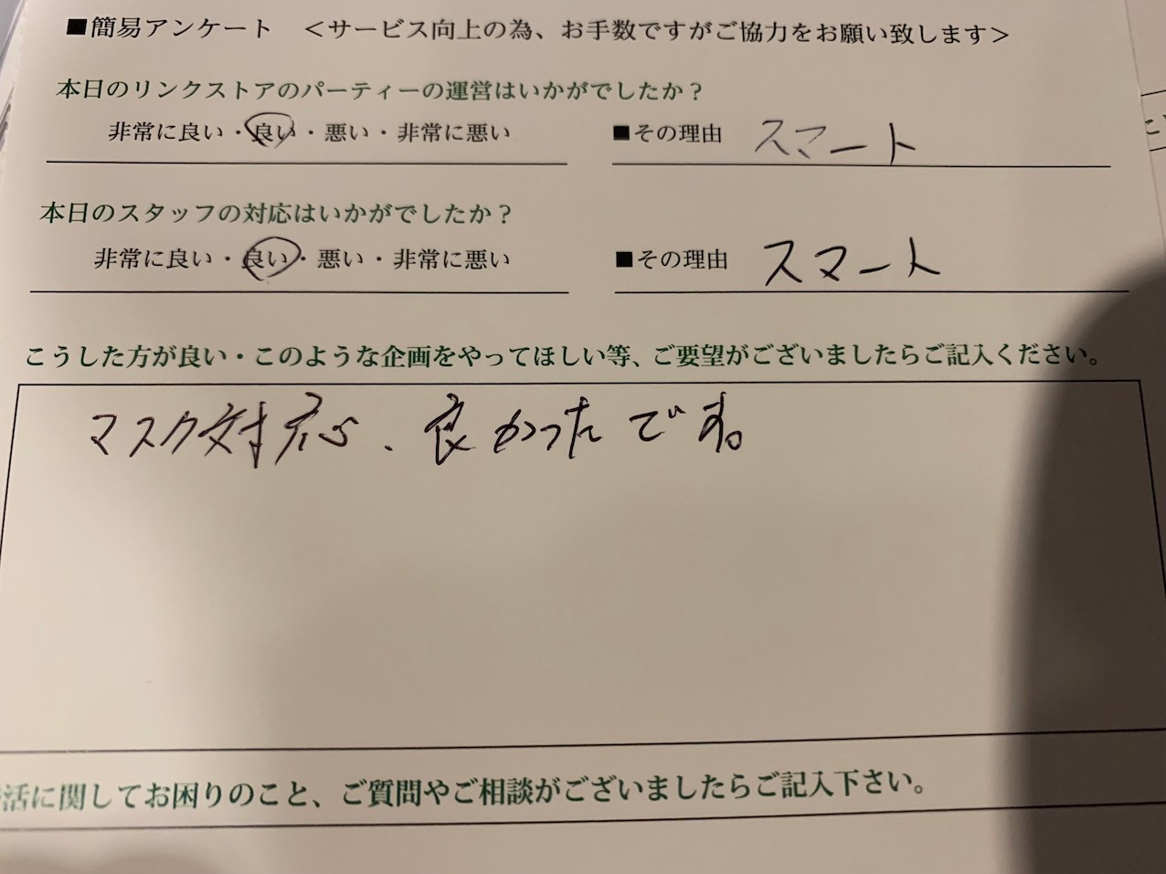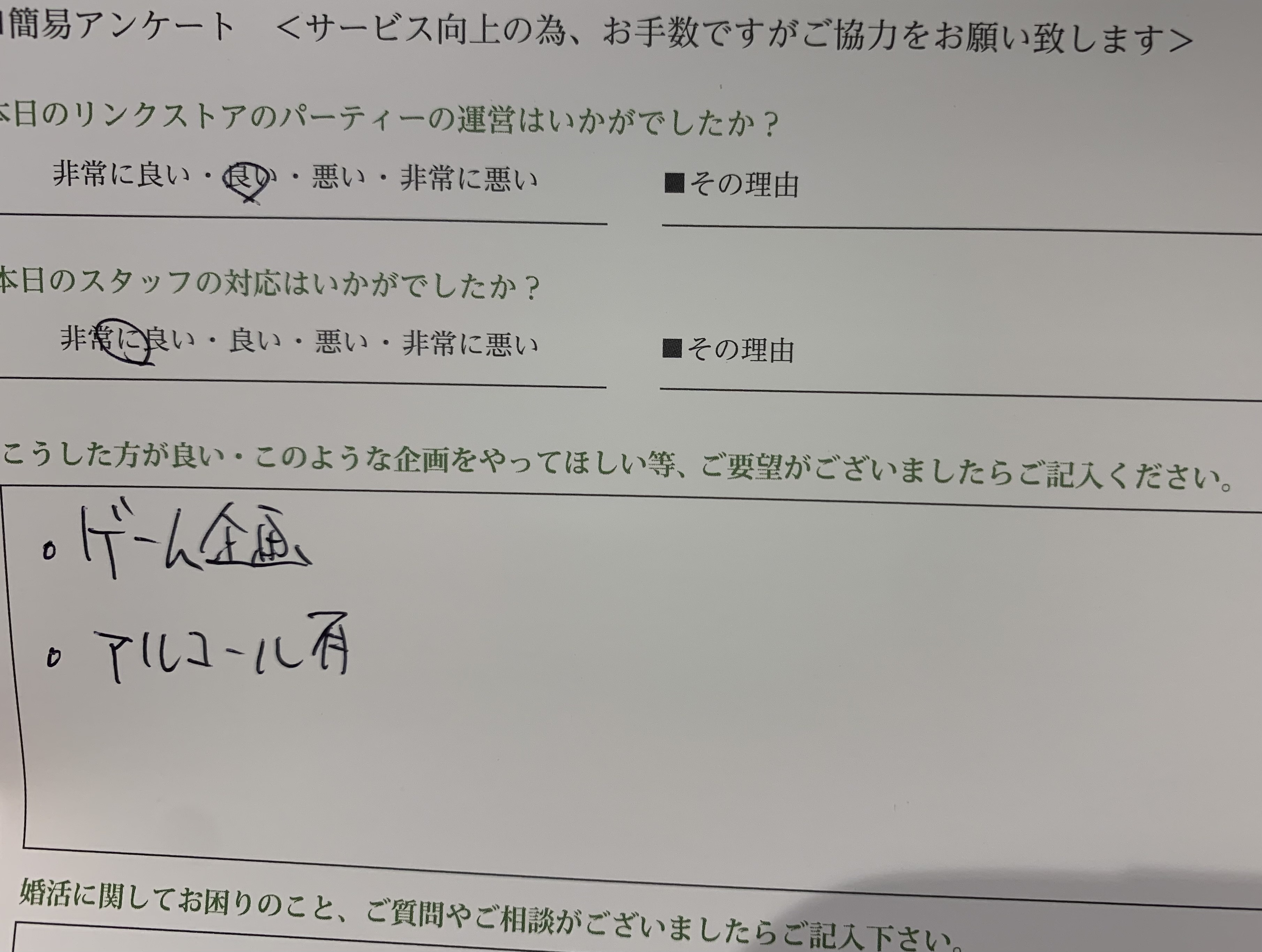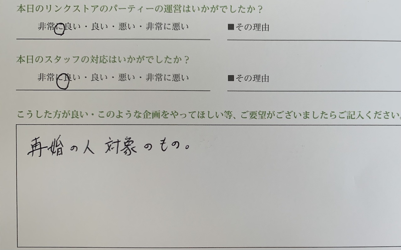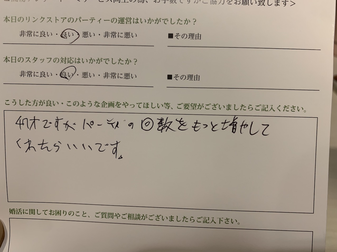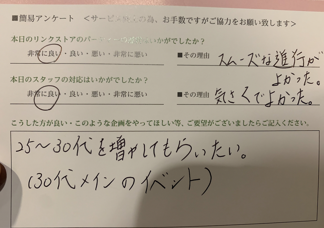 この度はリンクストア 高知エリアの婚活パーティーへご参加いただきまして誠にありがとうございます