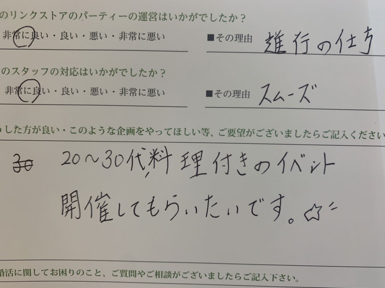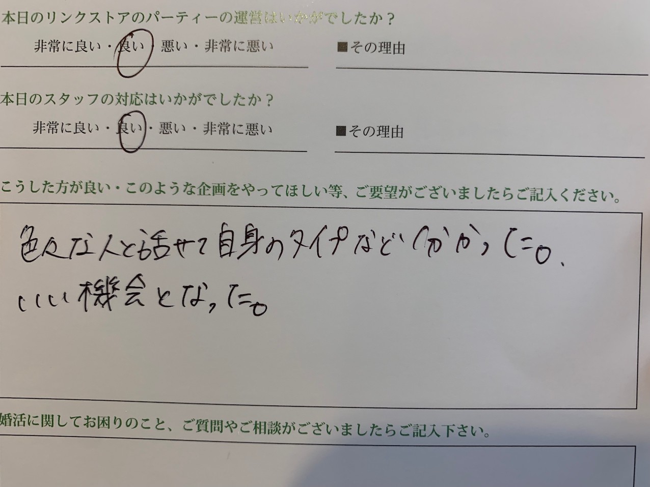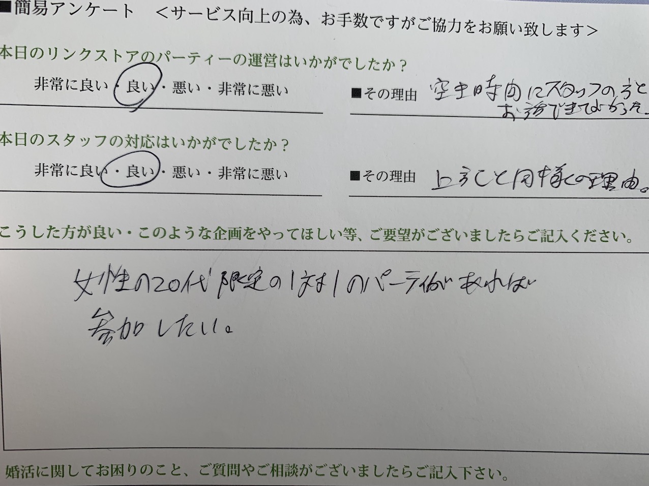 お見合い・婚活パーティーのお客様の声(口コミ)