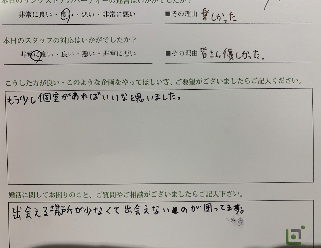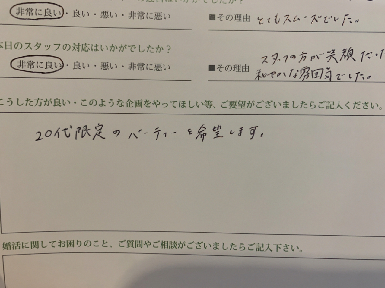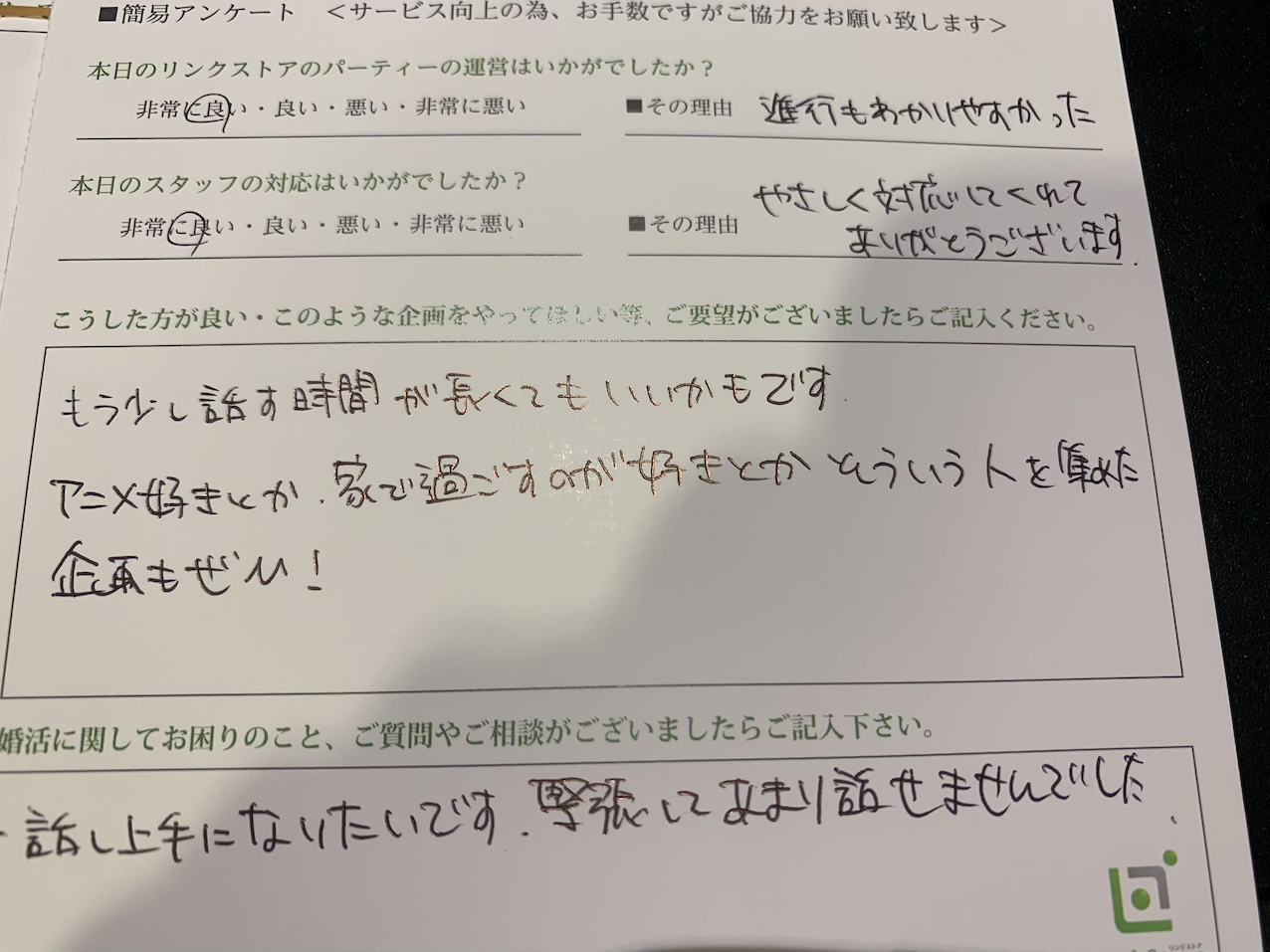 お見合い・婚活パーティーのお客様の声(口コミ)