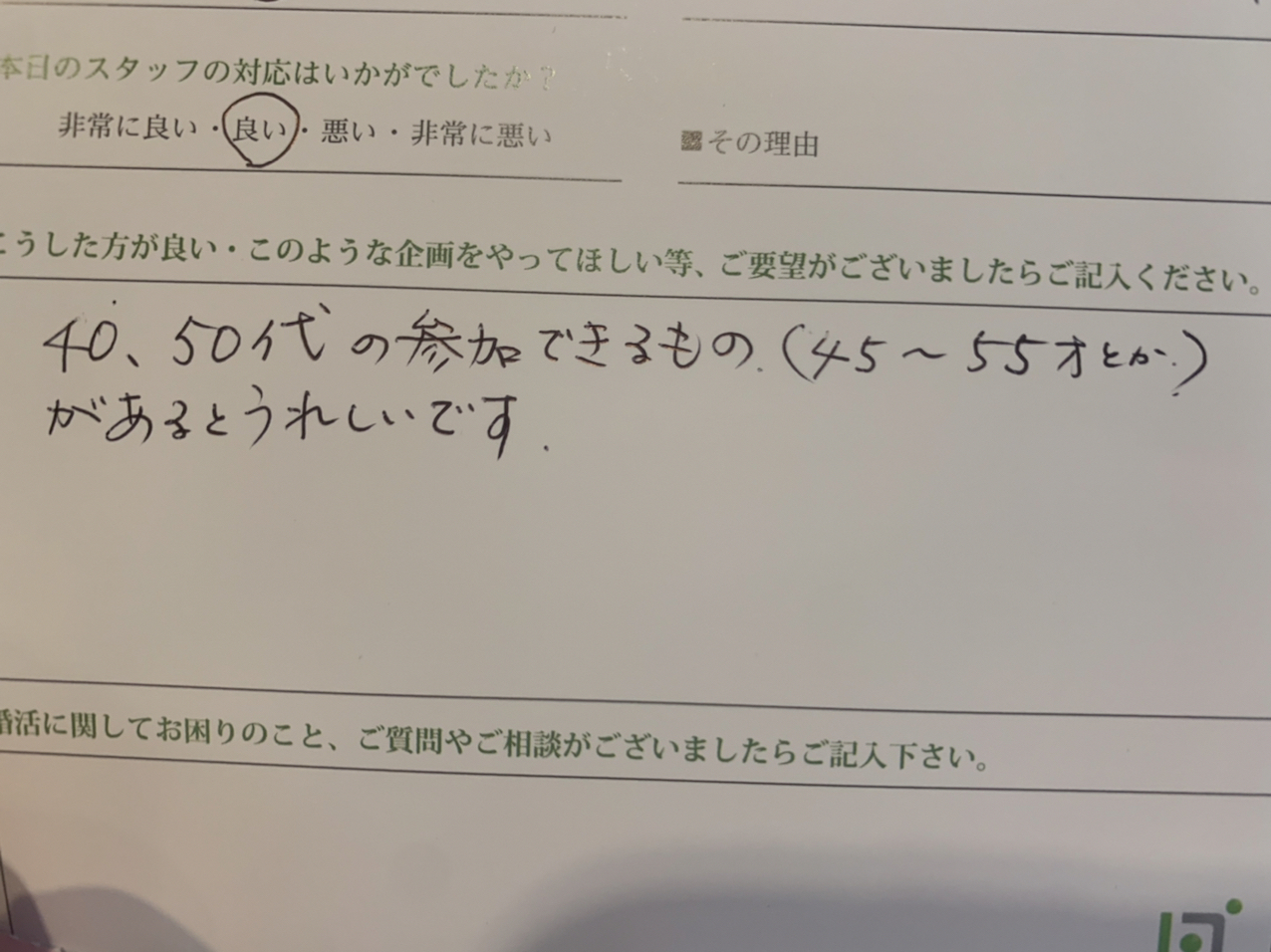 日中が参加しやすい方・夜がご参加されやすい方といらっしゃるかと思いますので、今後参考にさせていただきたいと思います