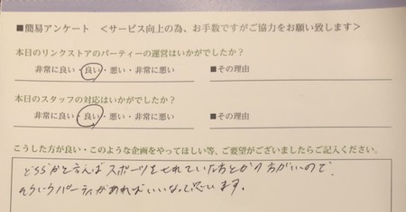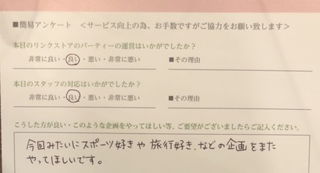 今回ご参加いただいたスポーツ好きのパーティーをまたしてほしいとのことでご提案いただきました