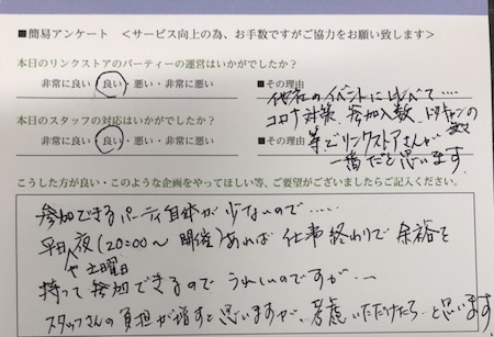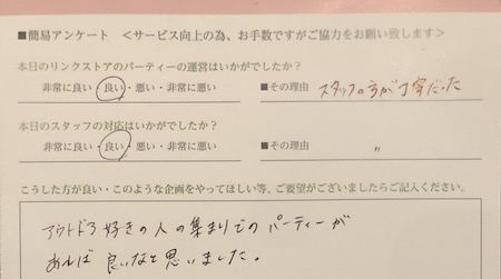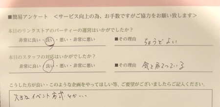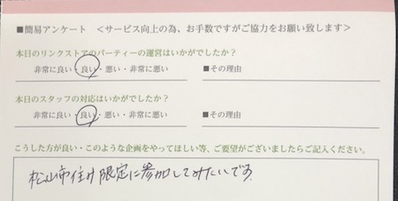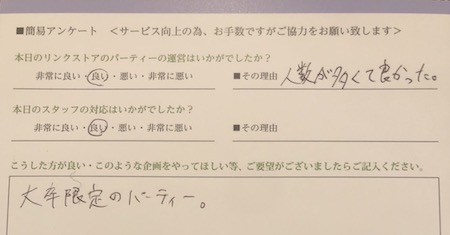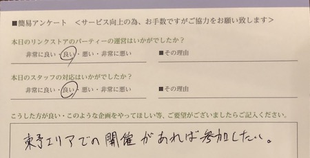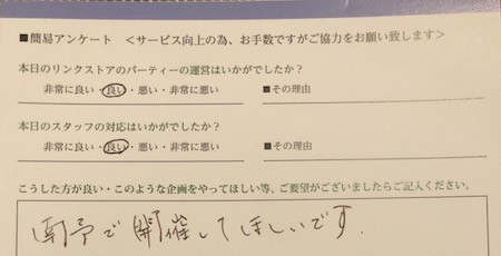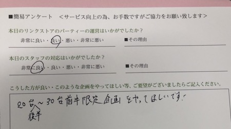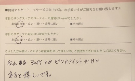この度はリンクストア 愛媛のパーティーのご参加ありがとうおざいます
