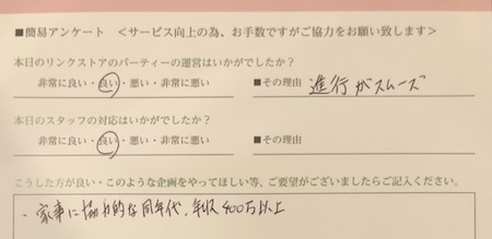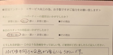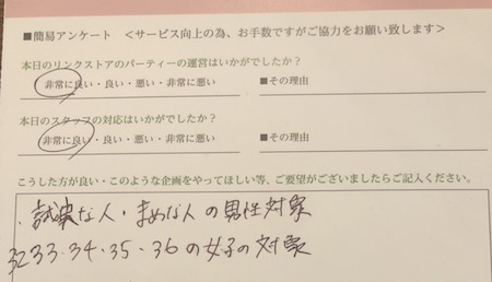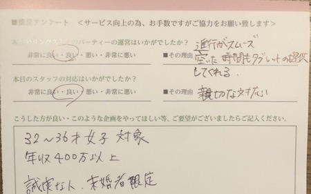 お見合い・婚活パーティーのお客様の声(口コミ)