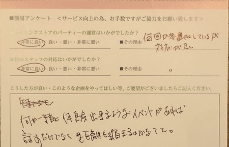 またご希望に沿うパーティーも今後企画会議で提案し実現できるように