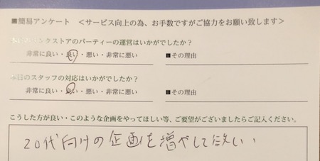 20代向けの企画を増やしてほしいとのご提案をいただきました