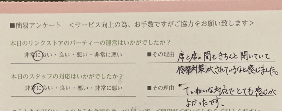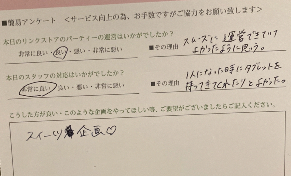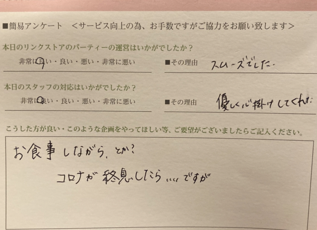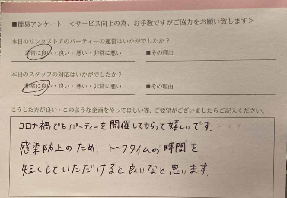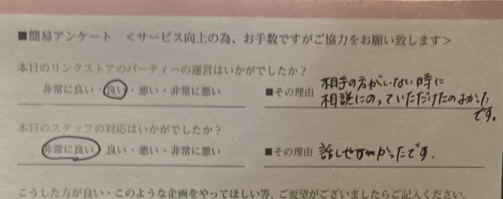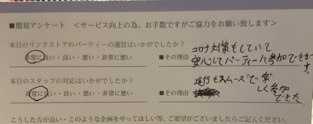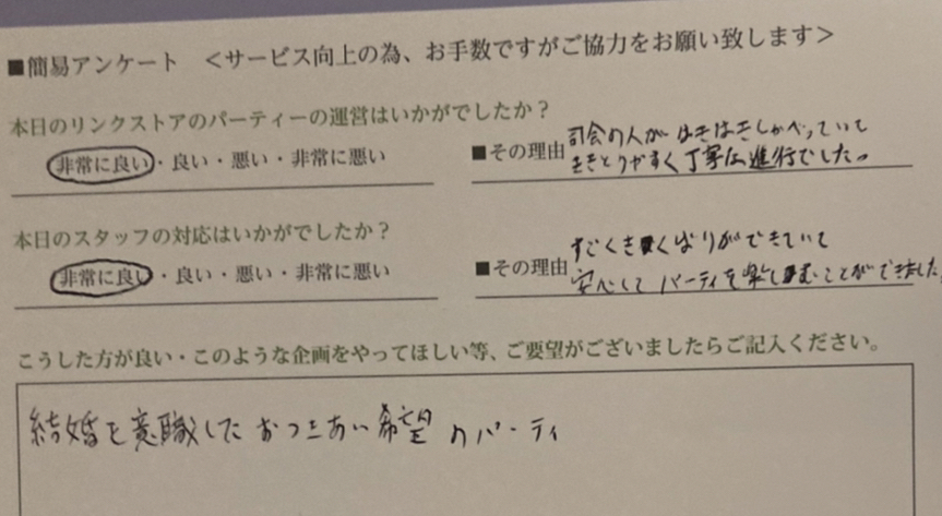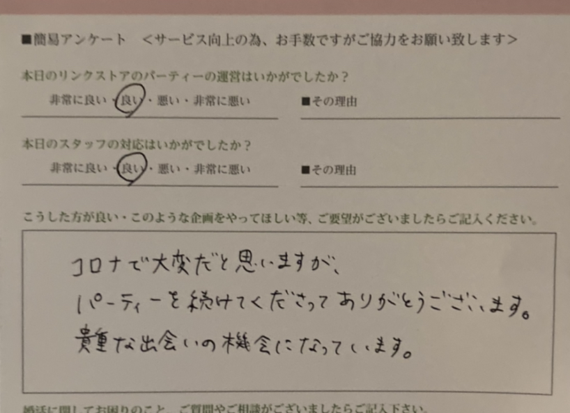 この度はリンクストア徳島の婚活パーティーにご参加いただきまして誠にありがとうございます