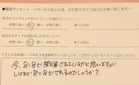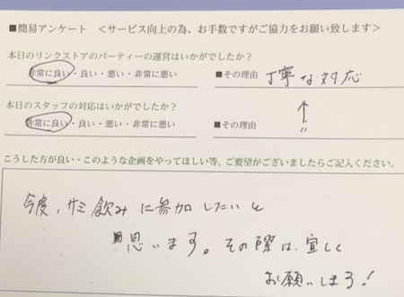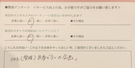 この度はリンクストア愛媛のパーティーにご参加いただき誠にありがとうございます