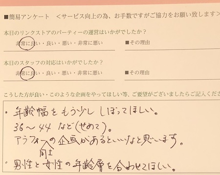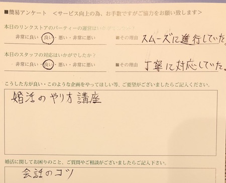 お見合い・婚活パーティーのお客様の声(口コミ)