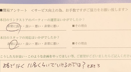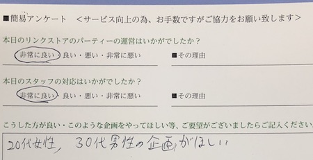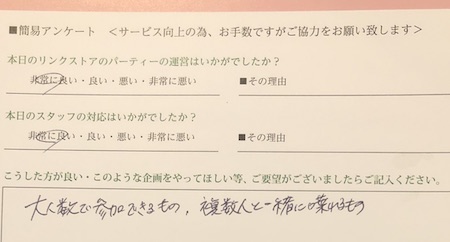 この度はリンクストアのパーティーにご参加いただき、ありがとうございます