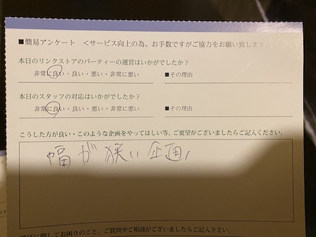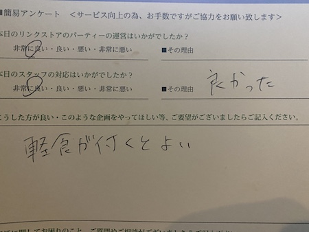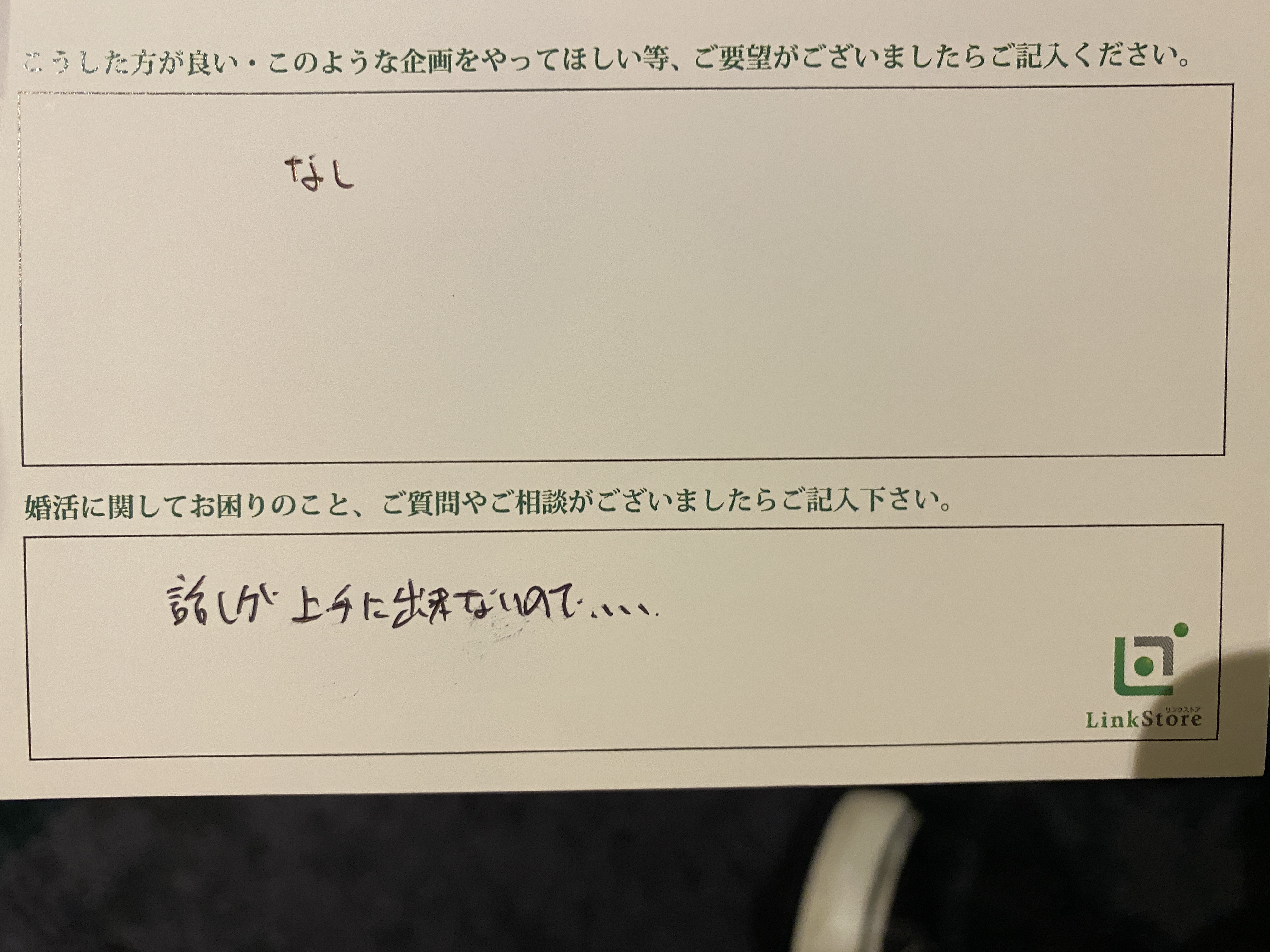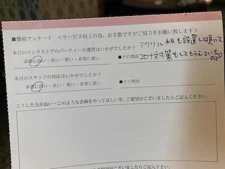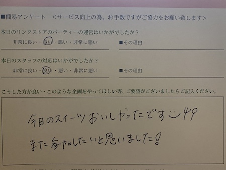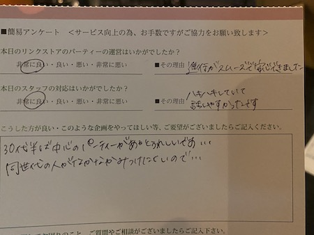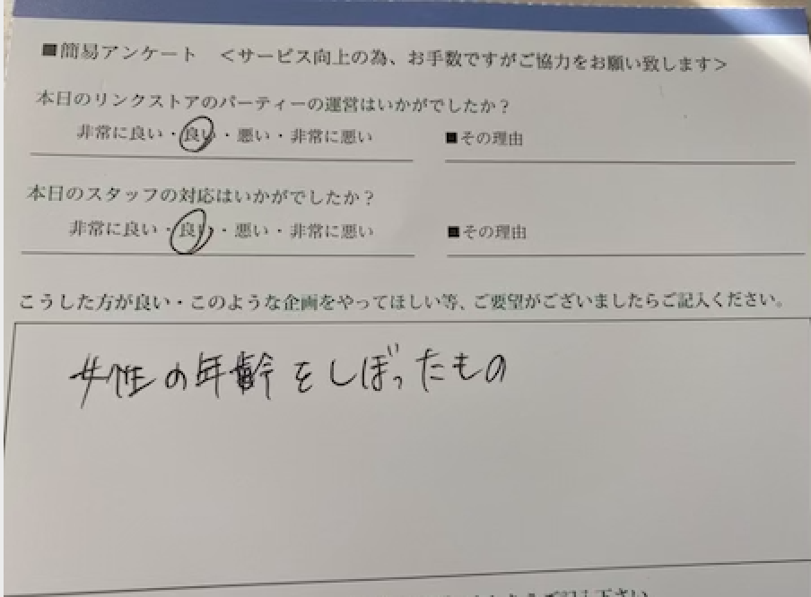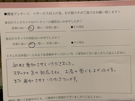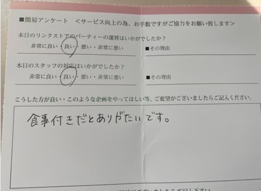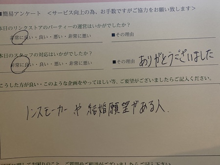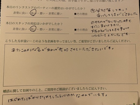 この度はリンクストア広島エリアの婚活パーティーにご参加いただきまして、誠にありがとうございます