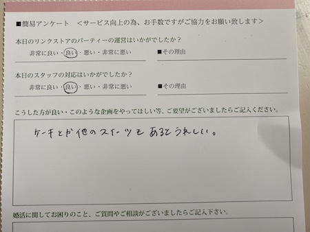 お見合い・婚活パーティーのお客様の声(口コミ)