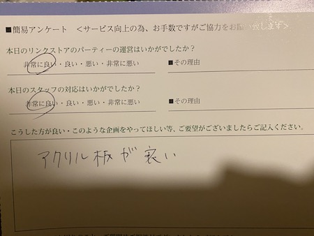 今回はリンクストアのパーティーにご参加いただきまして誠にありがとうございます