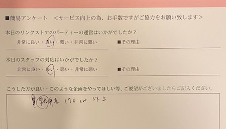 高身長男性にお集まりいただくパーティーをご紹介致しますね
