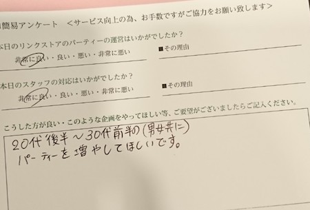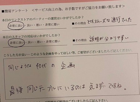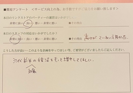 お見合い・婚活パーティーのお客様の声(口コミ)