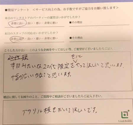 リンクストアパーティーでの出会いが良縁へと繋がっていれば嬉しいです
