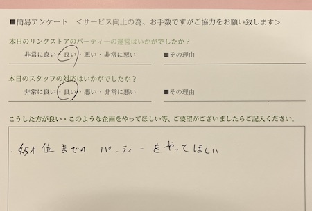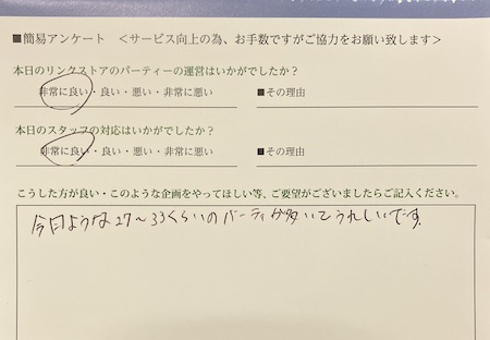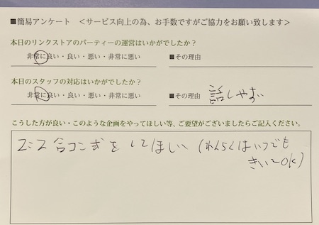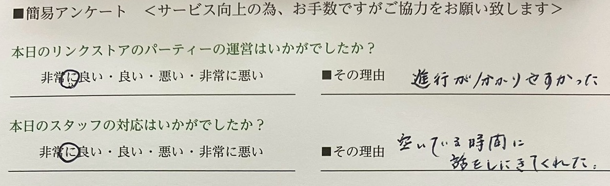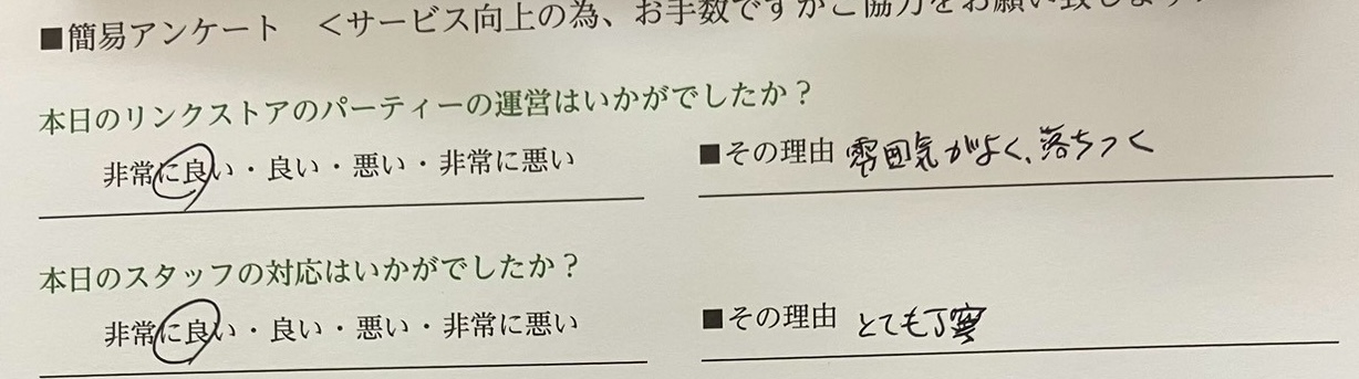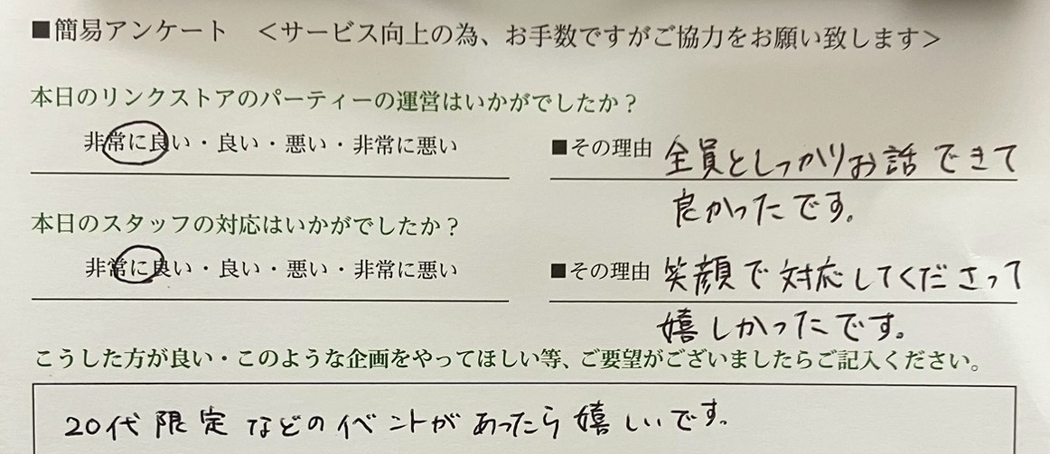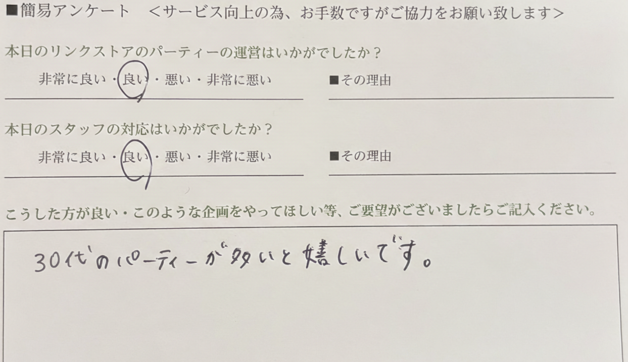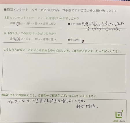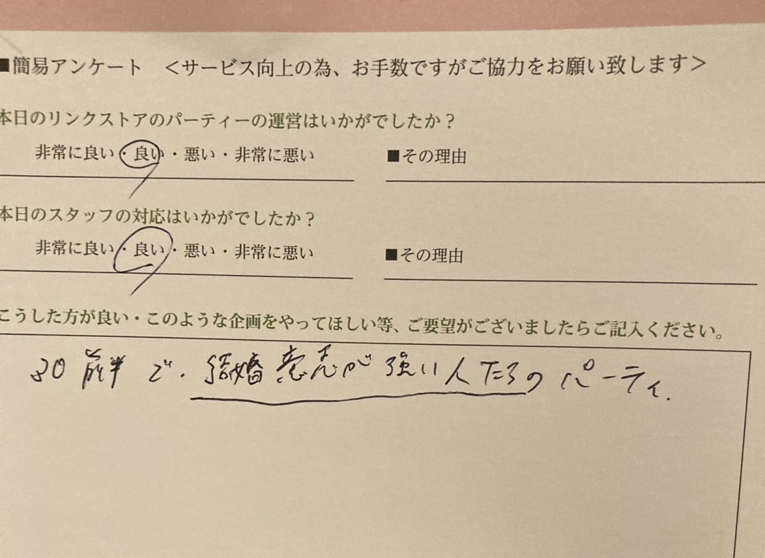 この度はリンクストア徳島の婚活パーティーにご参加いただきまして誠にありがとうございます