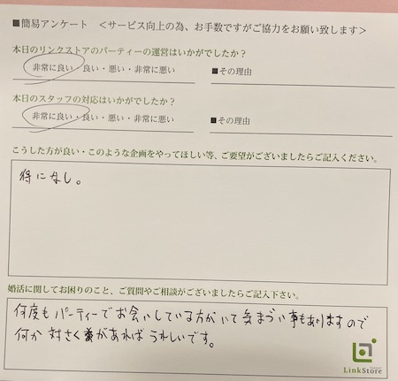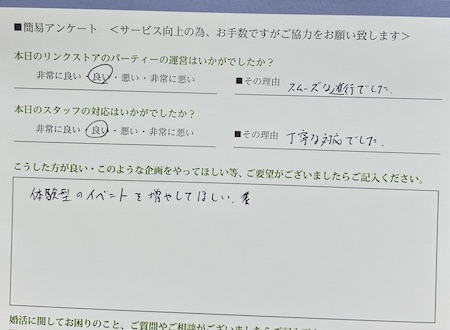 この度はリンクストア 高知エリア婚活パーティーご参加いただきましてありがとうございます
