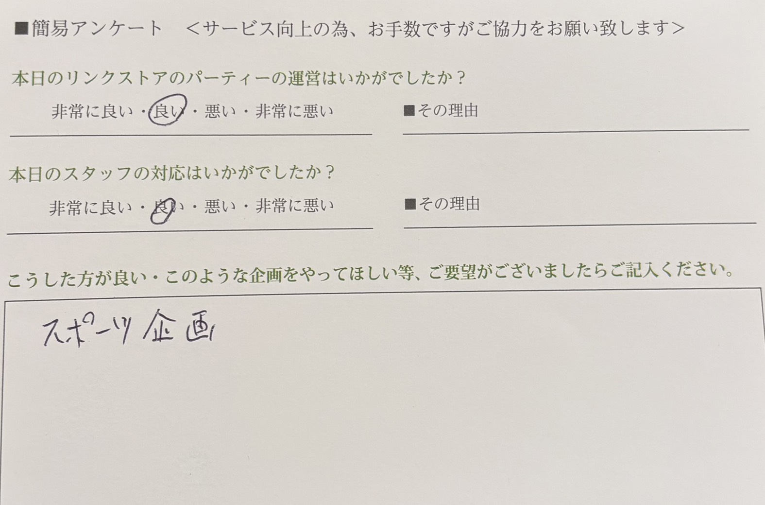 スポーツ企画についてのご意見をお寄せいただきありがとうございます