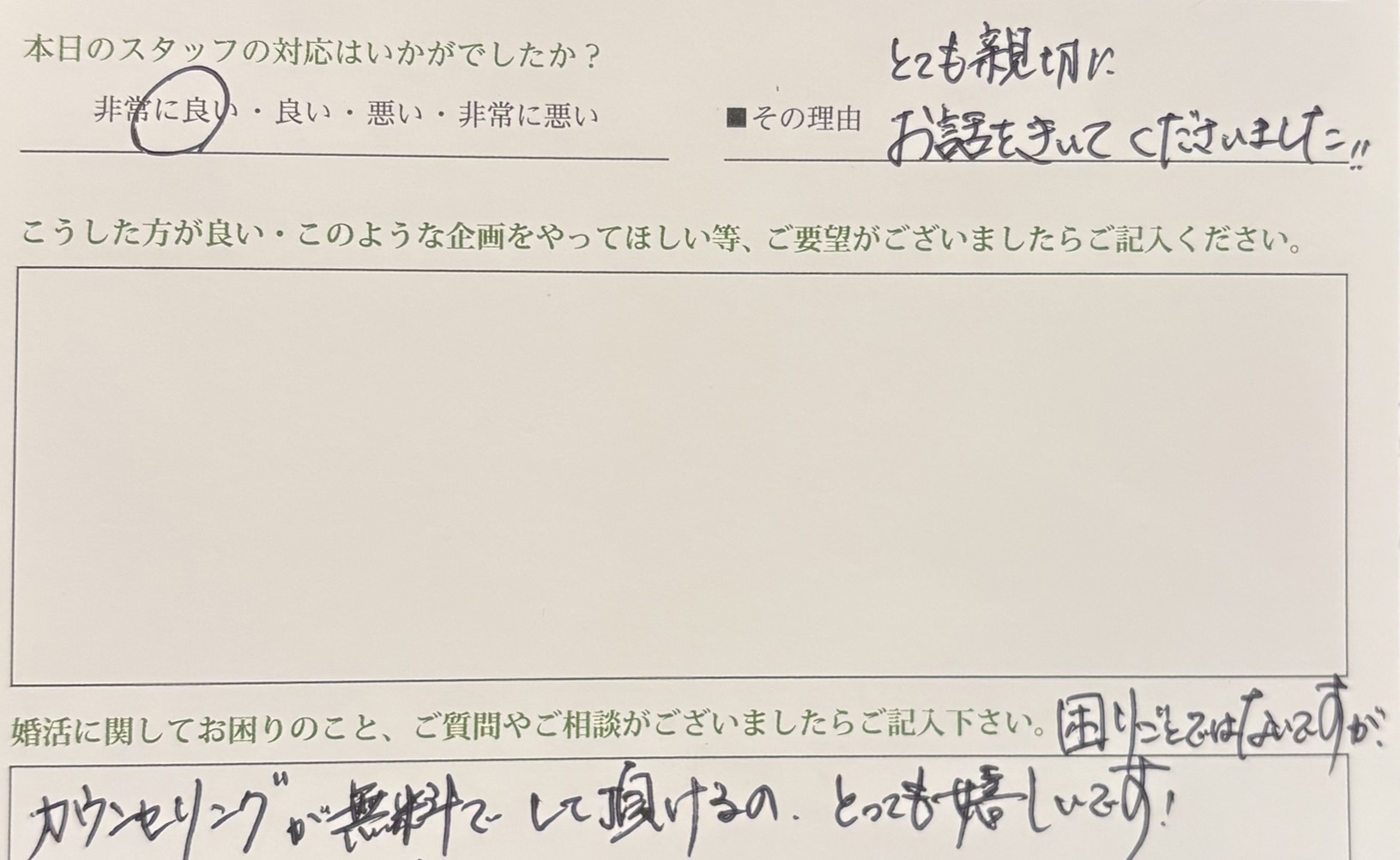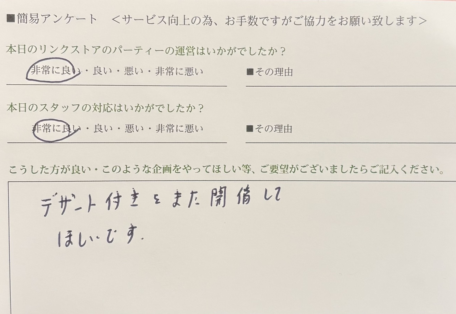 スタッフへのお褒めのお言葉ありがとうございます