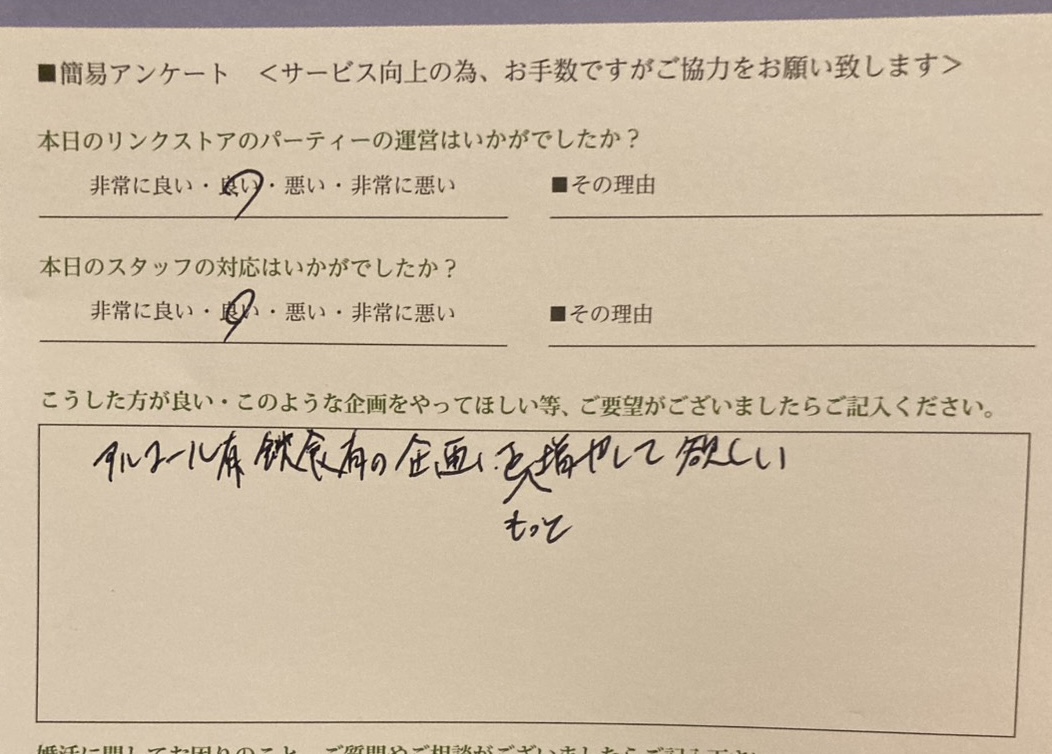 この度はリンクストア高知エリアのパーティーのご参加ありがとうございます