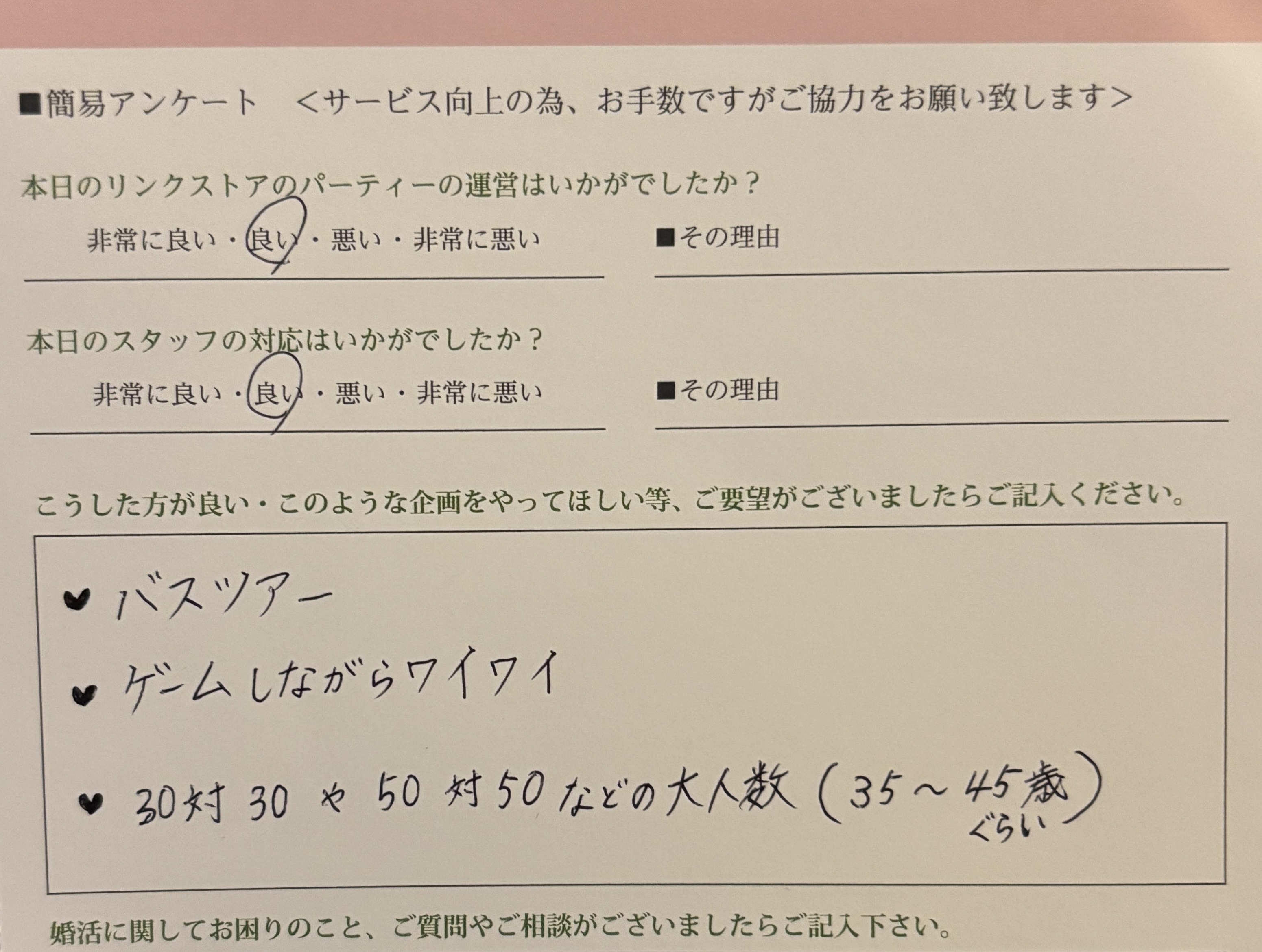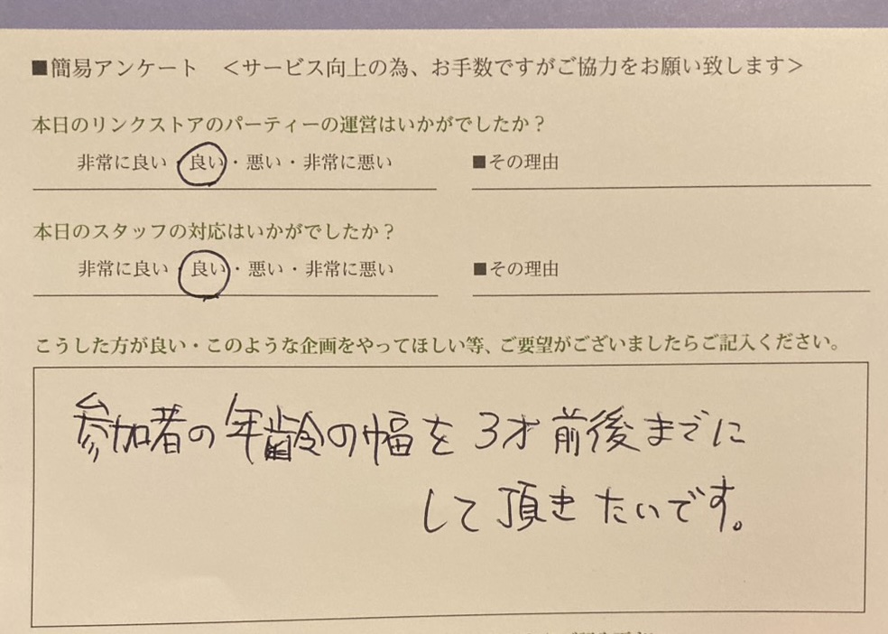 この度、リンクストア広島 婚活パーティーにご参加いただきましてありがとうございます