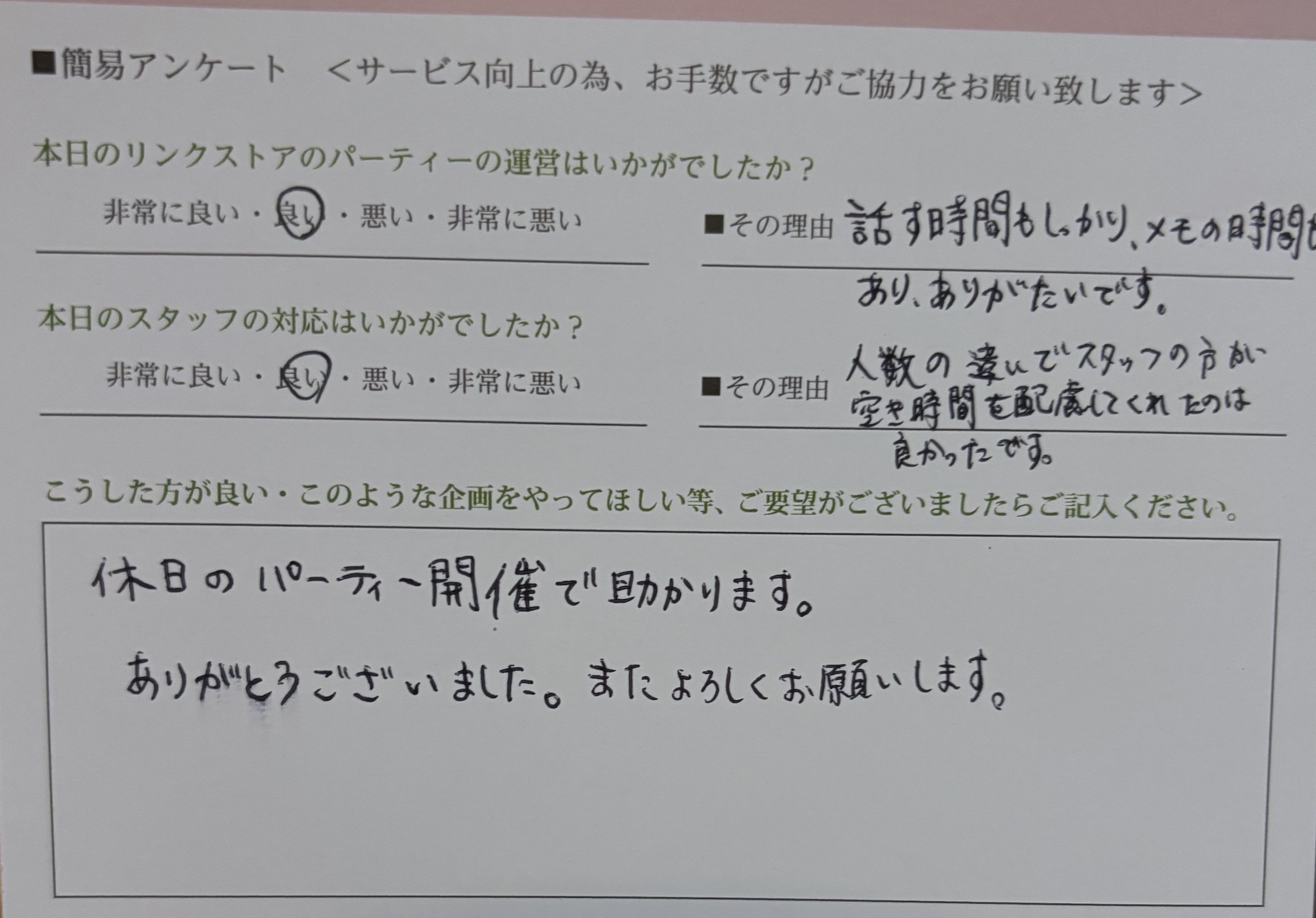 この度はリンクストア愛媛のパーティーにご参加いただきありがとうございます