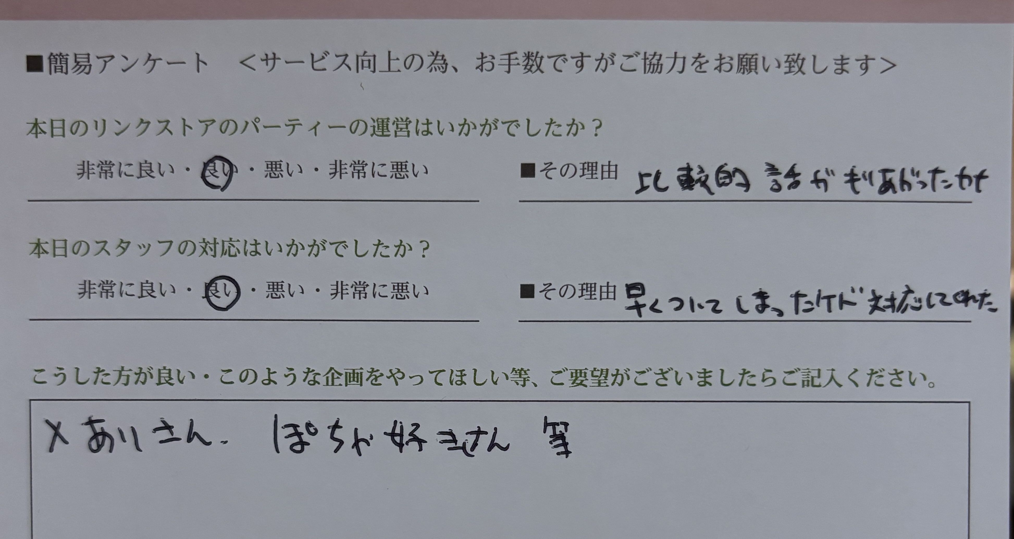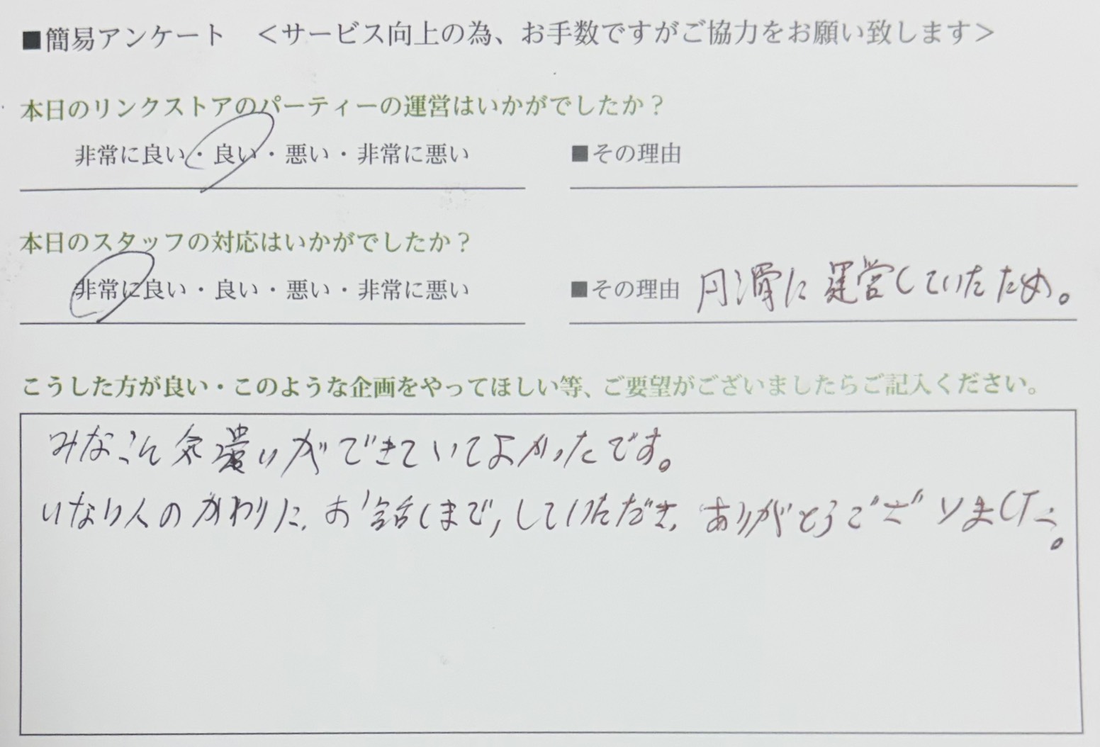この度はリンクストア愛媛のパーティーにご参加いただきありがとうございます