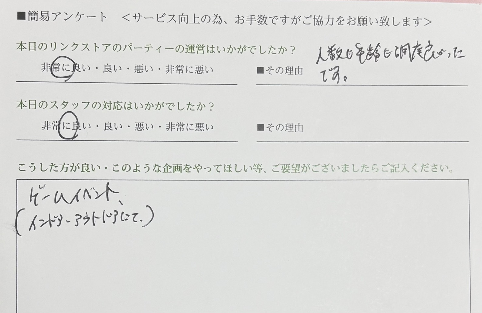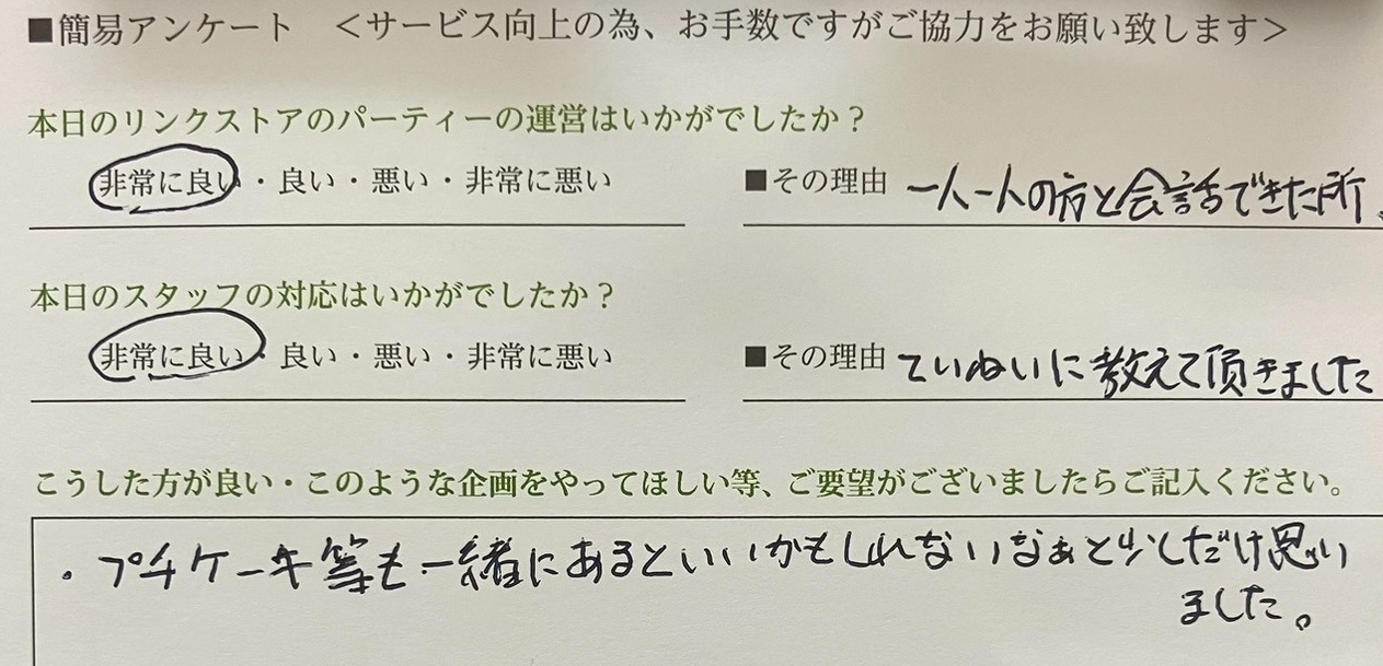 この度はリンクストア岡山エリアのパーティーへのご参加ありがとうございます