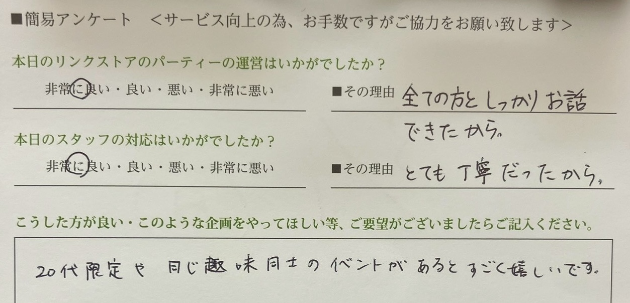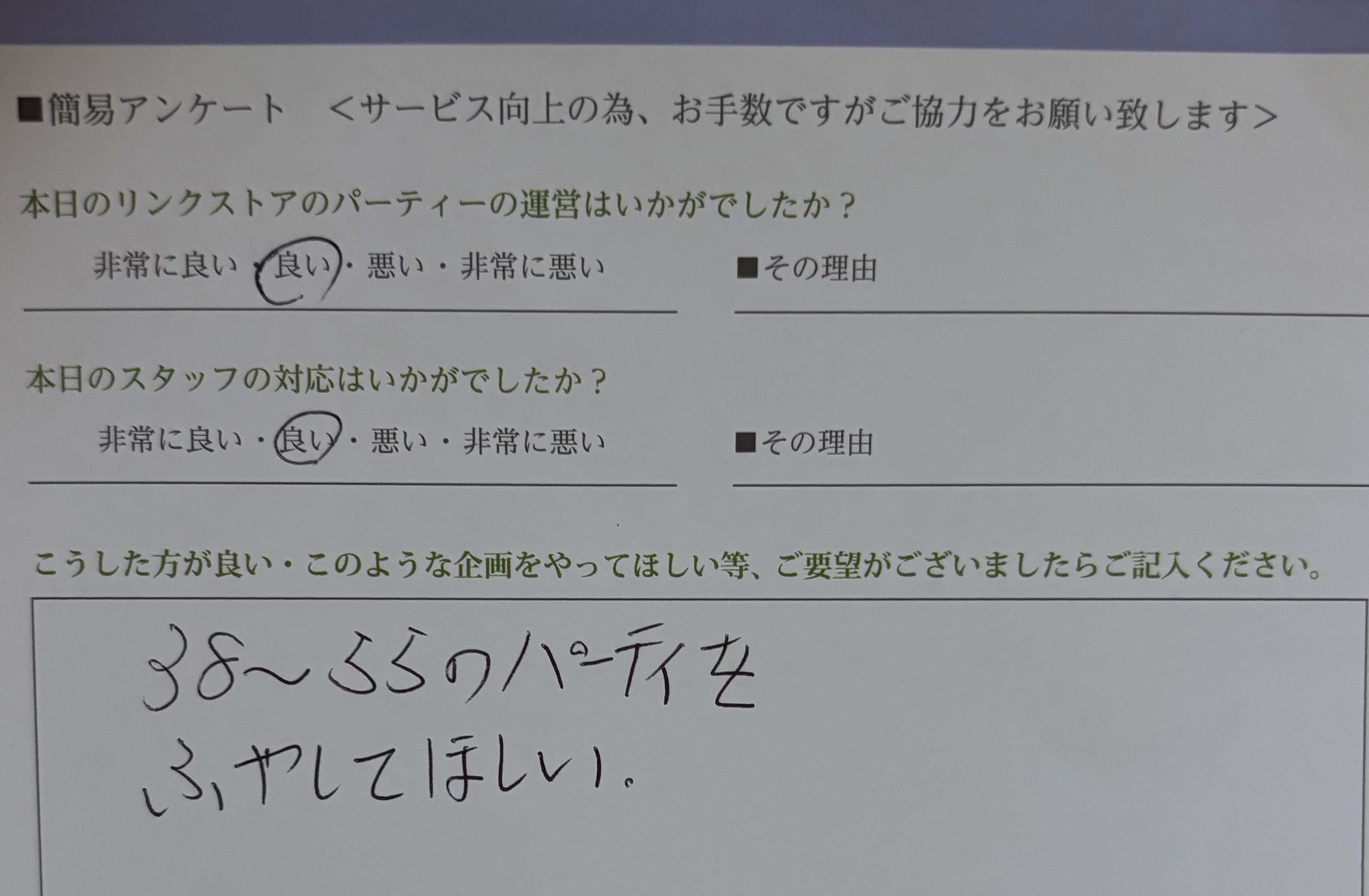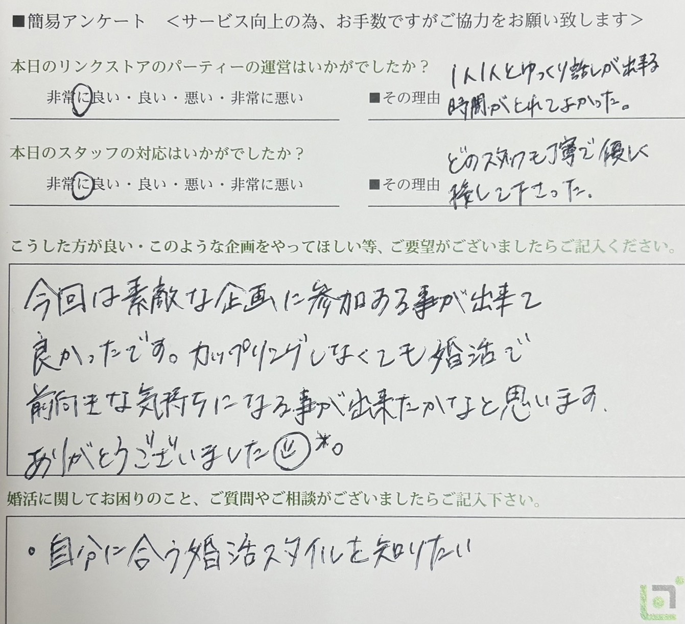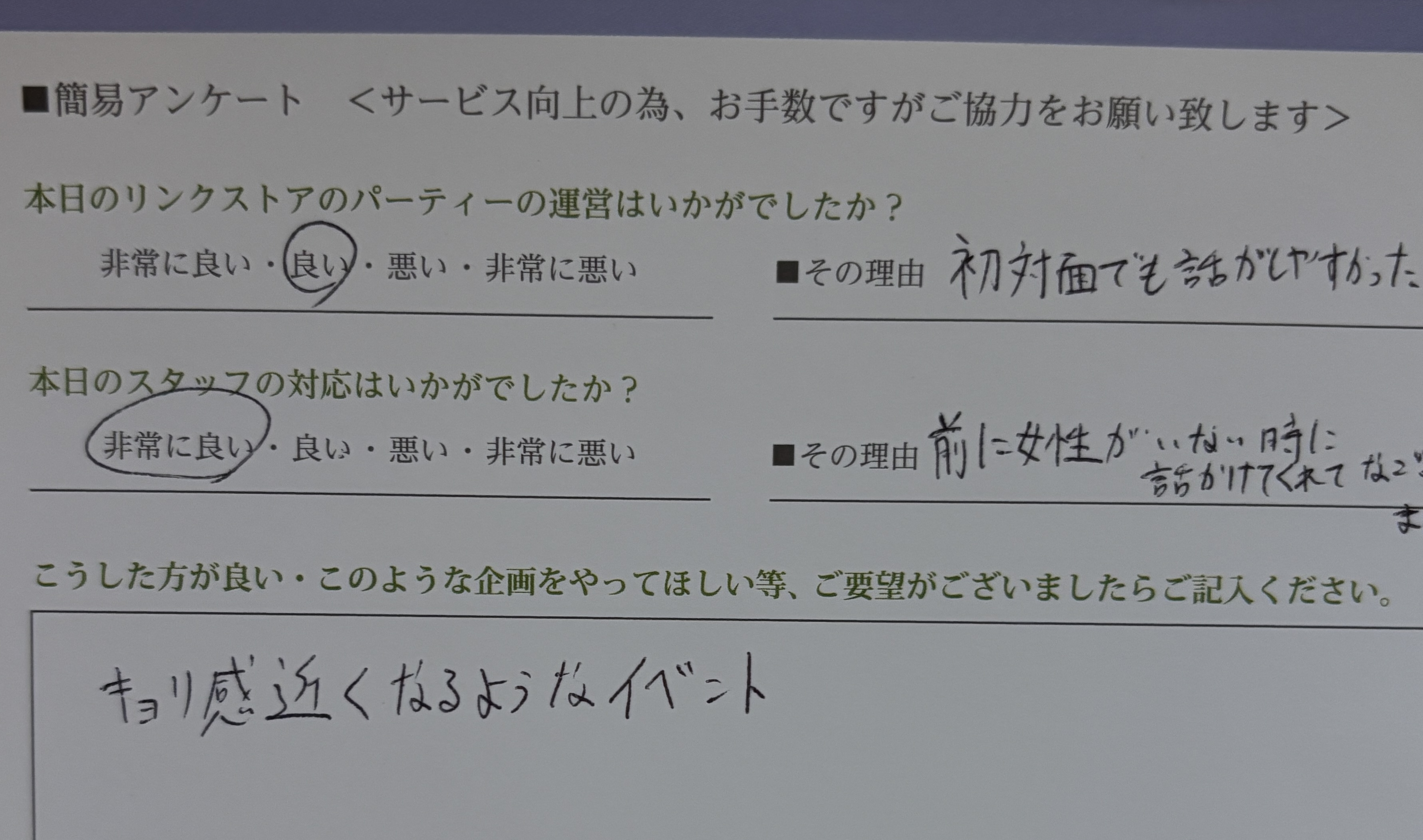 この度はリンクストア徳島の婚活パーティーにご参加いただきまして誠にありがとうございます