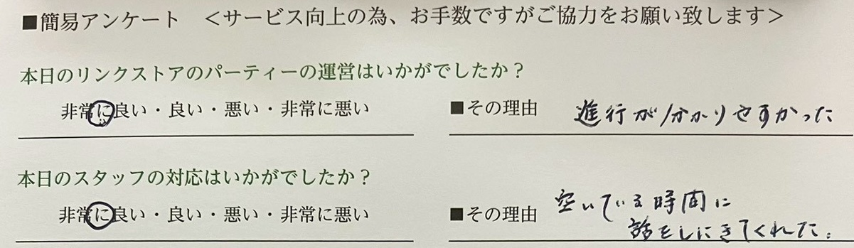 リンクストアの運営やスタッフへのお褒めの評価をいただきスタッフ一同喜んでおります