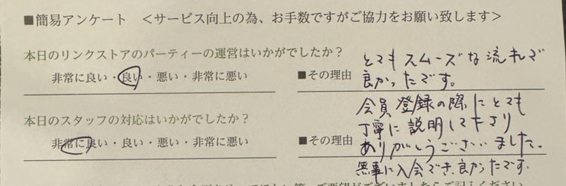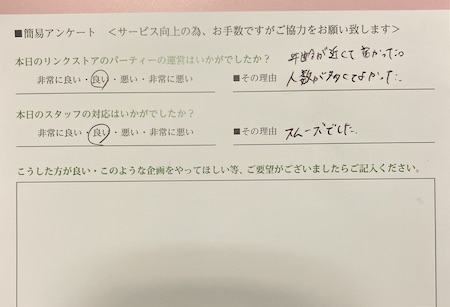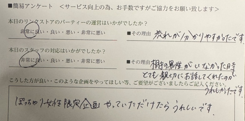 この度はリンクストア徳島の婚活パーティーにご参加いただきまして誠にありがとうございます