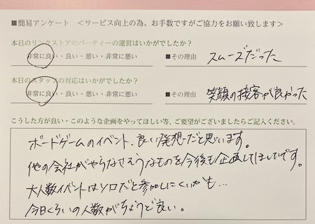 現在はまだ実施していない企画ではございますが、社内で共有し、今後の企画の参考にさせていただきます!またのご参加心よりお待ちしております